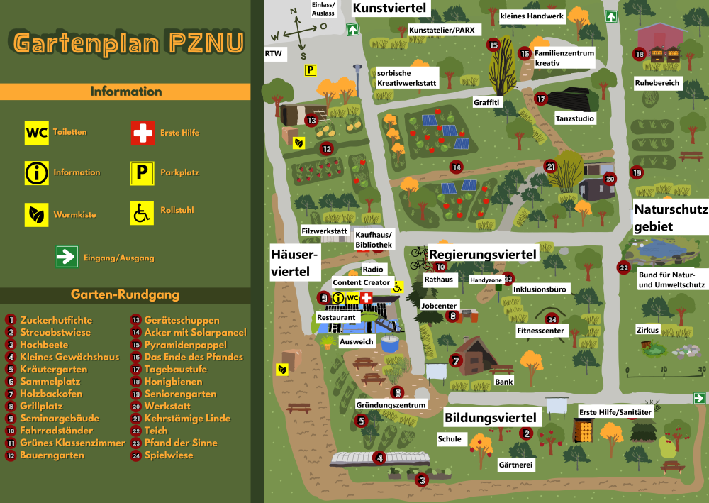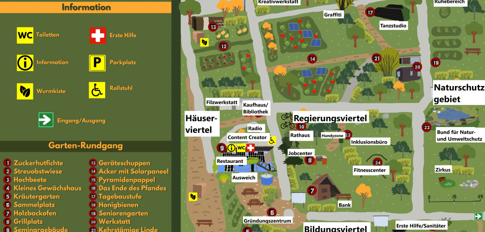 Am Umweltamt, unserem eigenen Stand, waren die fleißigen Mitarbeitenden täglich im Einsatz: Sie dokumentierten Tier- und Pflanzenarten, sammelten und trennten Müll, bauten Spinnenunterkünfte oder ernteten und trockneten Kräuter. Aber auch in den anderen Gewerken – von Bank über Inklusionsbüro bis hin zur Mediengruppe – konnten die Kinder ihre Fähigkeiten einbringen und weiterentwickeln.